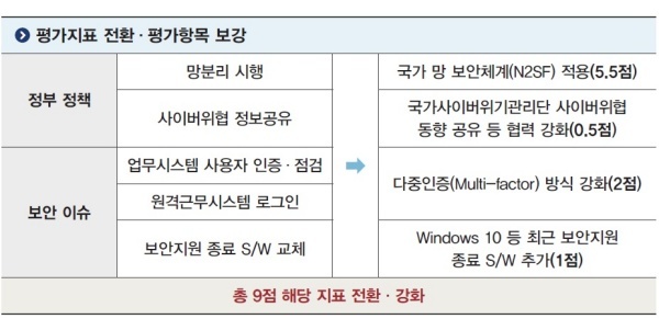 특히 2025년 발생한 정부 온나라시스템 해킹·국가정보자원관리원 화재로 인한 대민 서비스 마비와 같은 사고가 재발하지 않도록 해당 항목 평가를 강화해 국가·공공기관의 보안관리 수준을 제고할 예정이다.