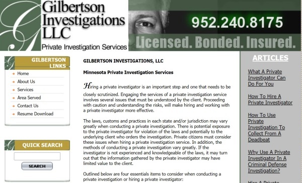 ♦ Gilbertson Investigations, LLC 홈페이지 (http://gilbertsoninvestigations.com )