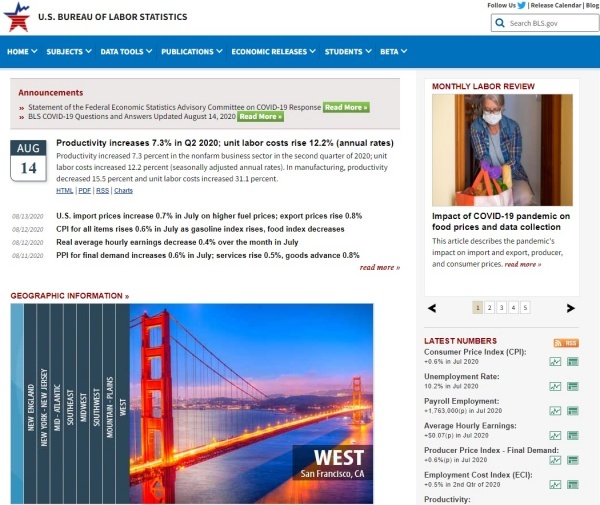♦ 노동통계국(Bureau of Labor Statistics) 홈페이지