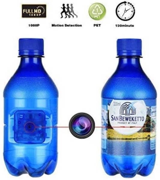 미국 탐정들이 현장 감시에서 많이 사용하는 스파이 카메라 중 물병 형태의 스파이 카메라가 있다. WEKE의 블루 색상의 물병형 스파이 카메라의 녹화 품질은 1080P이다.