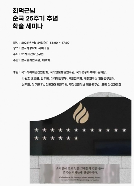 오는 9월 29일 21세기전략연구원은 국가정보원(이하 국정원) 순직 정보요원에 대한 첫 공개 추모 행사를 개최할 계획이다. 1996년 러시아 블라디보스톡에서 북한 공작원에 의해 피살된 최덕근 영사를 추모하기 위한 학술 세미나가 열린다.
