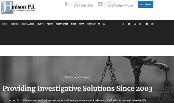 미국 탐정기업 호드슨 P.I.(Hodson P.I. Investigations)는 캘리포니아주 남서부 도시 풀러턴을 기반으로 영업하고 있다.