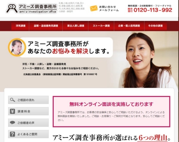♦ 아미즈탐정사무소(アミーズ調査事務所) 홈페이지(https://www.ami-z.jp)