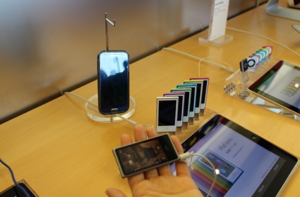 ▲홍콩의 애플 매장에 전시된 다양한 휴대폰(출처 : iNIS)