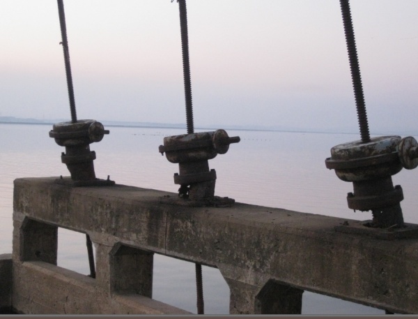 ▲서해안에 위치한 낡은 수문과 섬(출처 : iNIS)
