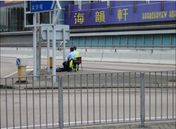 ▲교통표지판 뒤에 숨어서 교통단속을 하는 홍콩 경찰(출처 : iNIS)