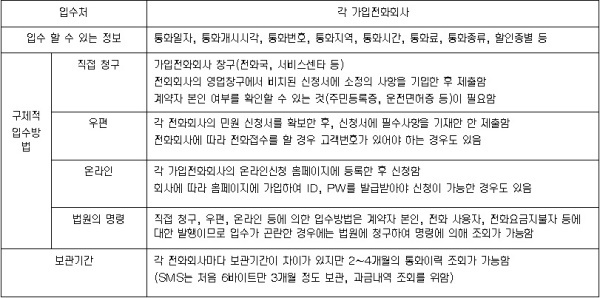 가입자, 가입자의 가족, 수사기관 등이 통화이력정보를 입수할 수 있는 4가지 방법을 살펴보자.